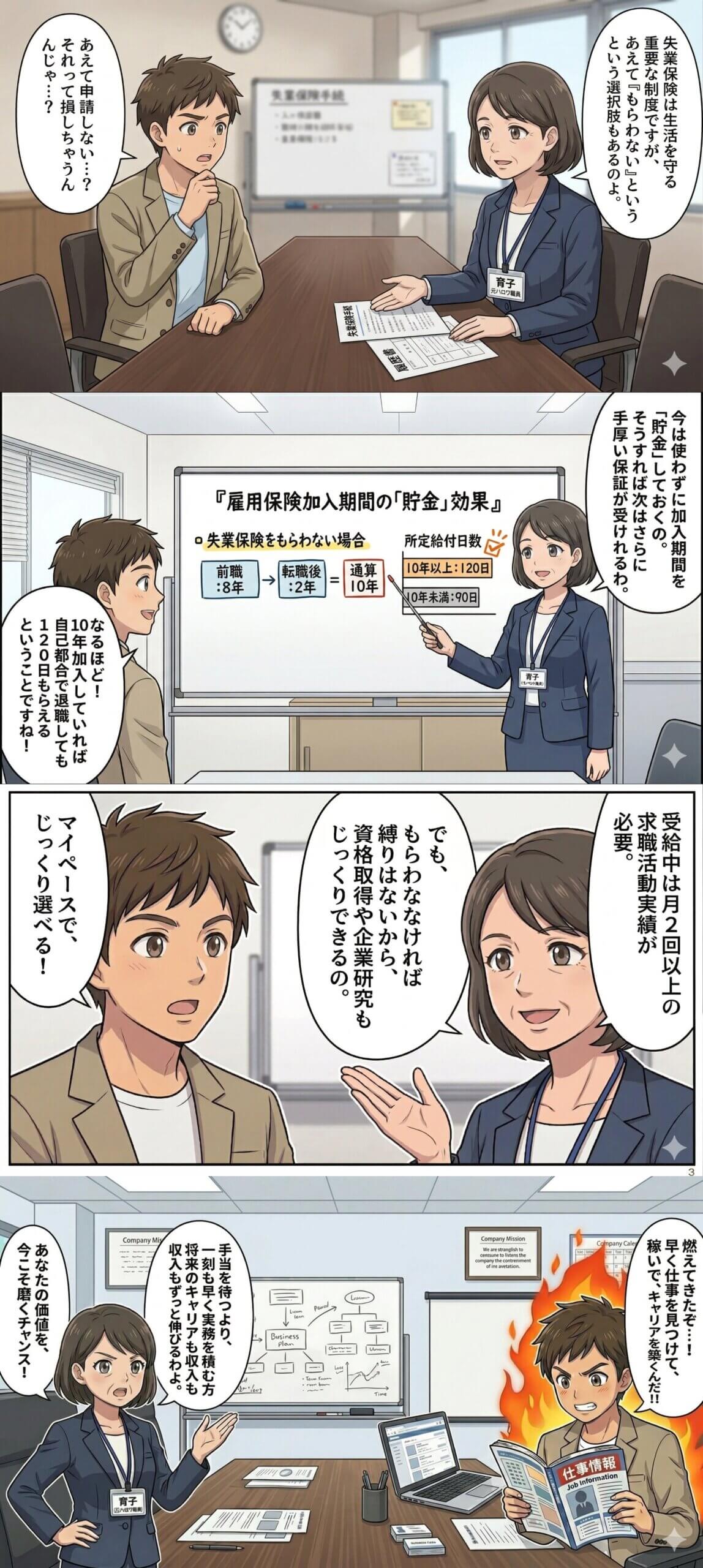 一方で、失業保険を受け取らず自分を追い込むことで、短期間での再就職やキャリア再構築に集中できる人もいます。