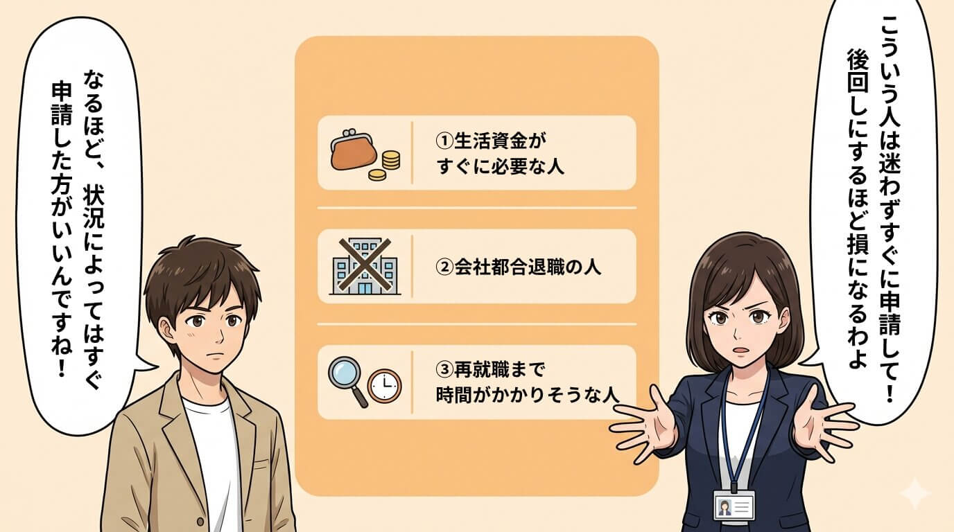 「申請しない方が得」とは限らず、状況によっては申請を遅らせる方が損になることもあります。