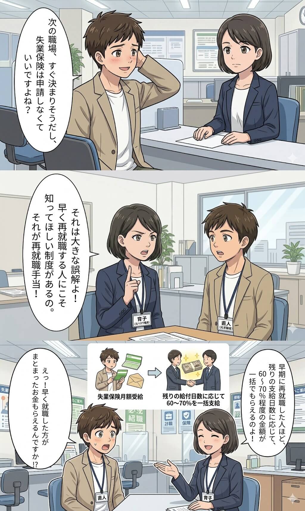 実際に、早期就職を達成した場合は、再就職手当など別の給付を受けられる可能性もあります。