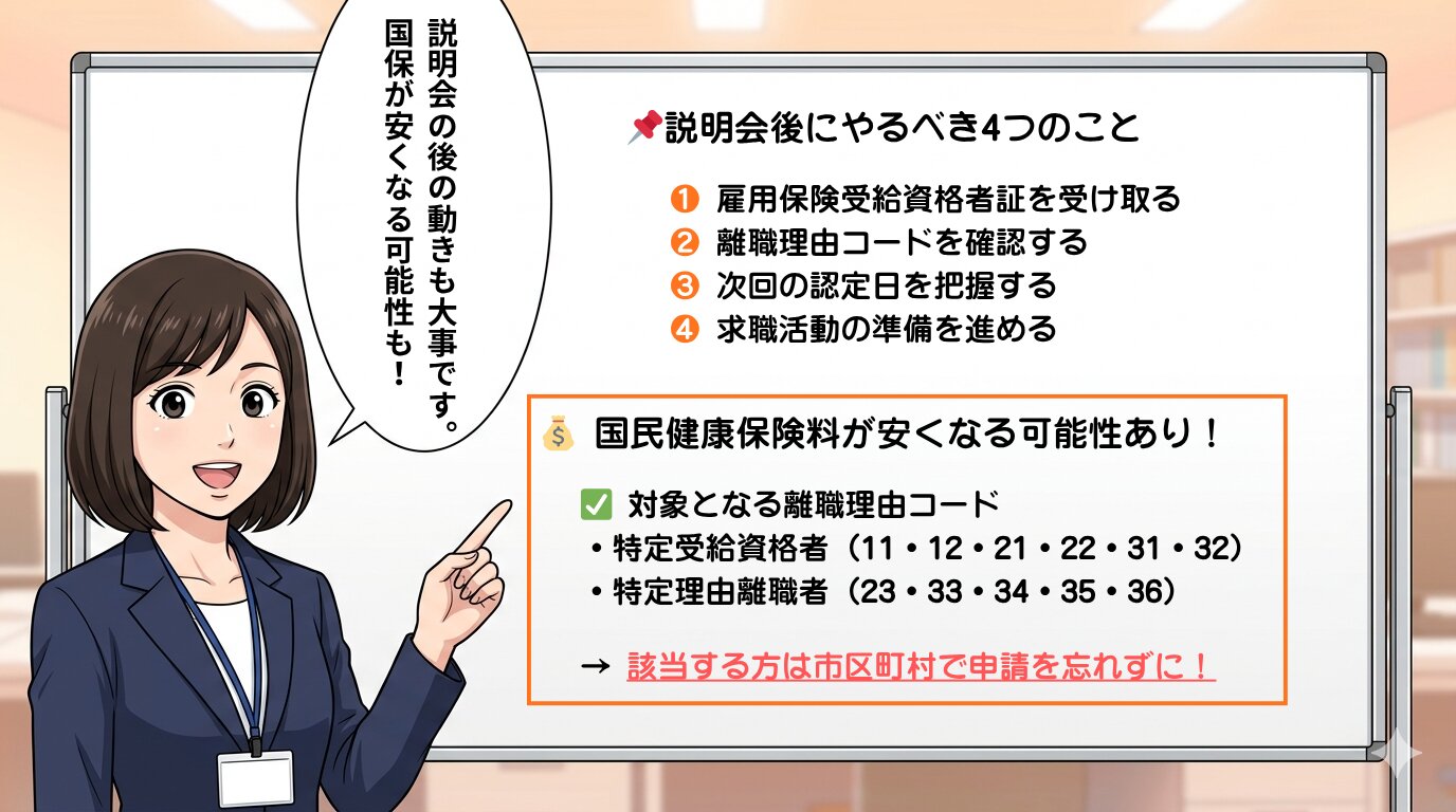 - 説明会後は、認定日や求職活動の準備を進めることが重要