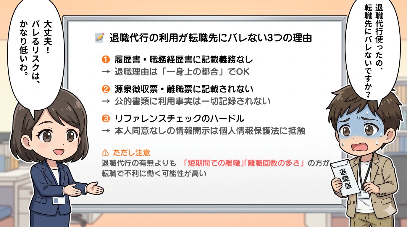 転職活動において、退職代行を使ったことがバレるのではないかと不安になる方も多いですが、以下の理由からそのリスクは極めて低いと言えます。